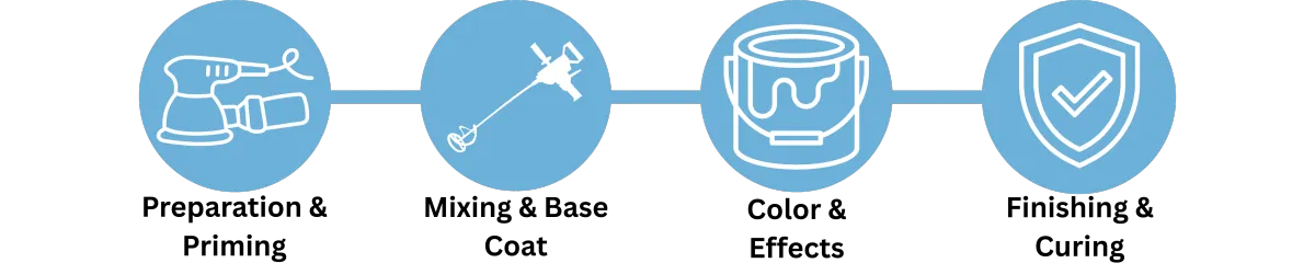 Achieve marble, granite, quartz, or metallic effects with customized color blending.